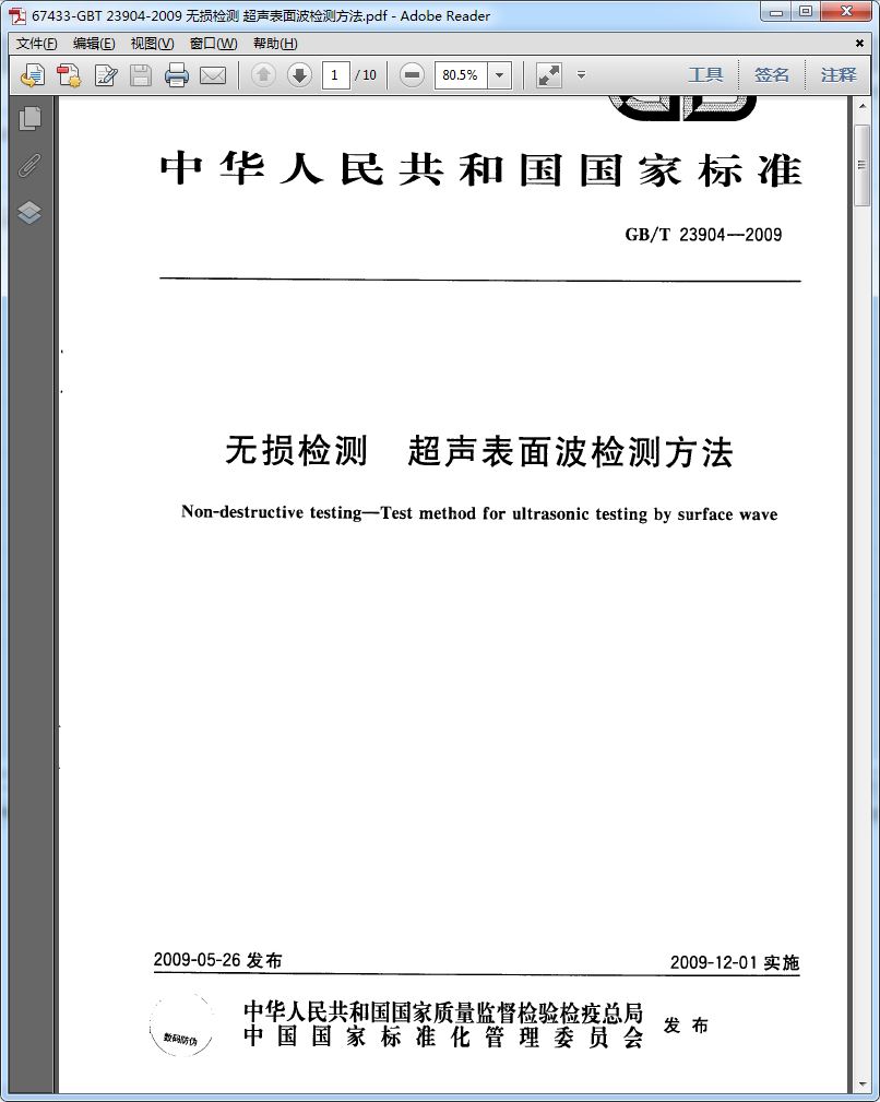 [GB/T 23904-2009]无损检测 超声表面波检测方法 ...